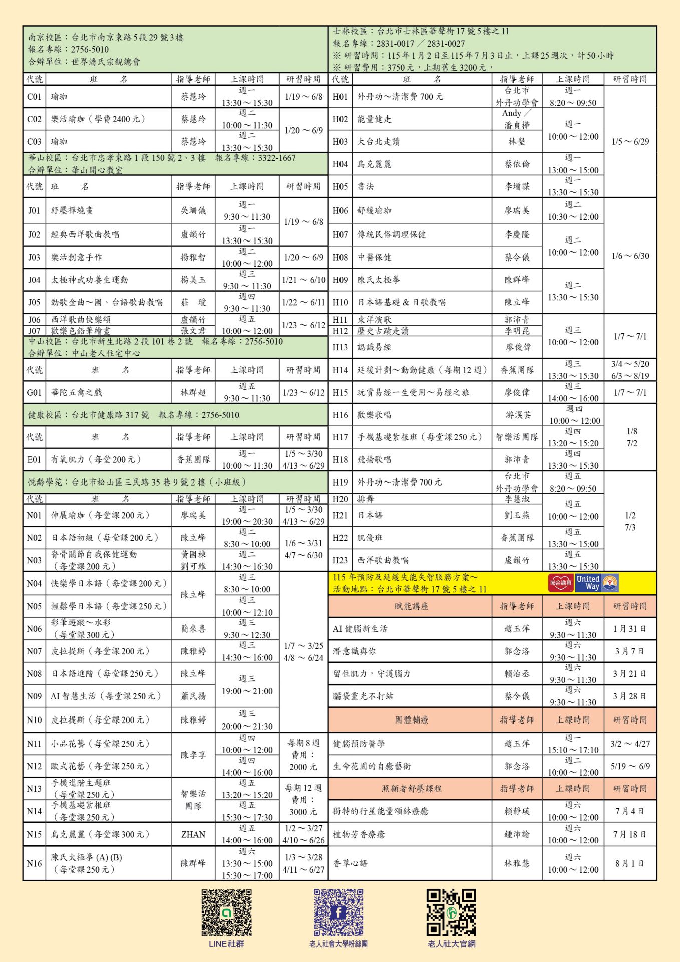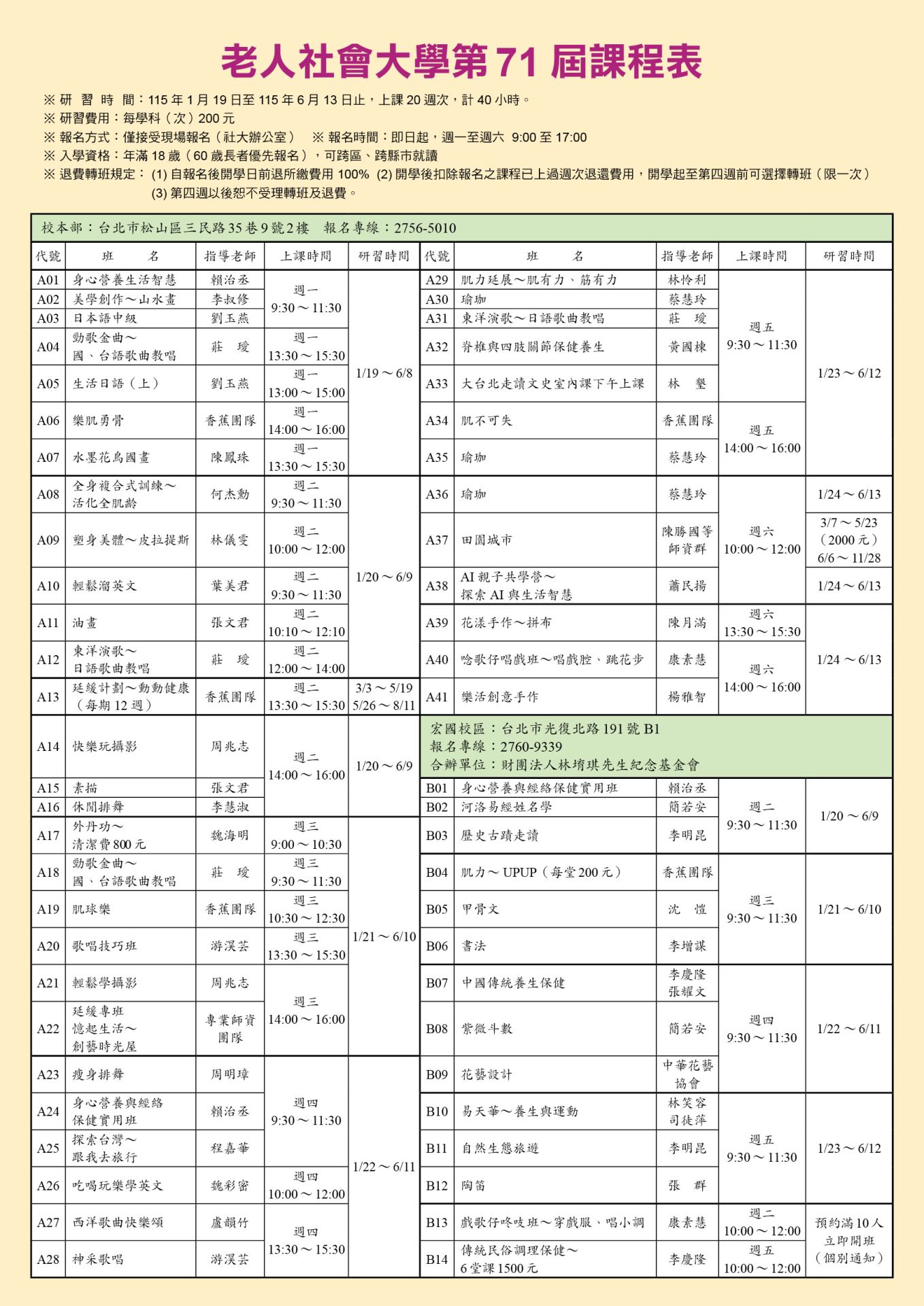 新學期~第71屆課程表